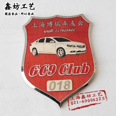 上海博瑞汽车车友会徽标 金属车标中网标定做首选上海鑫坊