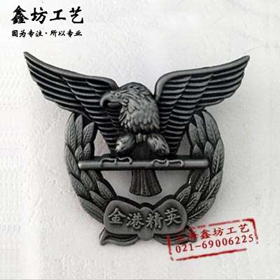 【产品名称】金港精英徽章 镂空立体浮雕司徽 鹰形公司胸牌定做