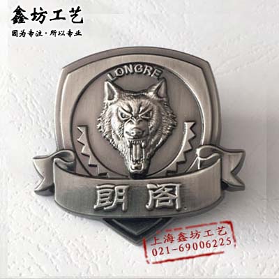 【产品名称】朗阁教育徽章 狼头立体浮雕战队徽章 电镀仿古徽章定做