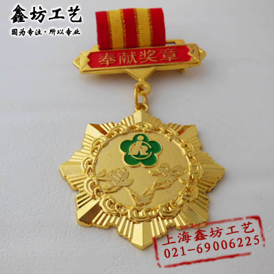 【产品名称】奉献奖章 上海市聋人协会奉献镀金奖牌鑫坊工艺制品
