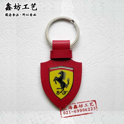 法拉利汽车钥匙扣 合金珐琅皮革钥匙扣 车标广告钥匙扣个性定做