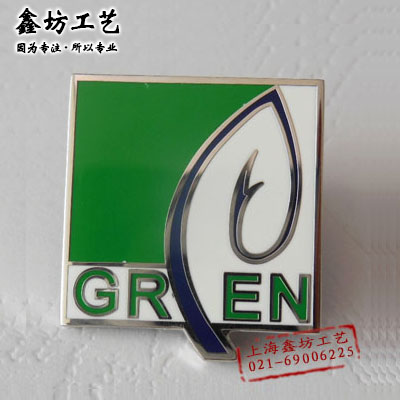 Green绿色珐琅徽章 上海绿之都建筑科技公司徽章 鑫坊工艺