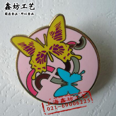 彩色蝴蝶徽章定做 珐琅加印刷徽章制作 上海鑫坊徽章制作厂