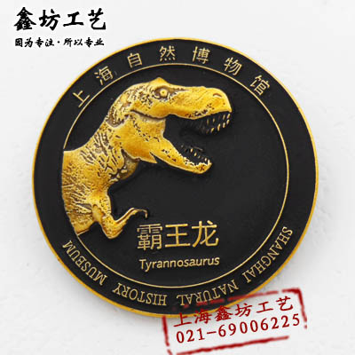 定制上海自然博物馆徽章 制作霸王龙3D立体徽章 古生物徽章