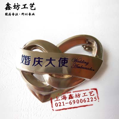 个性定做婚庆大使立体镂空徽章 制作心形镂空胸章 上海鑫坊工艺