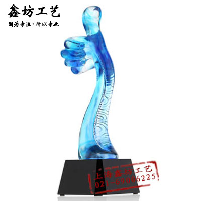 【产品名称】首屈一指大拇指琉璃奖杯 定制高档琉璃比赛颁奖