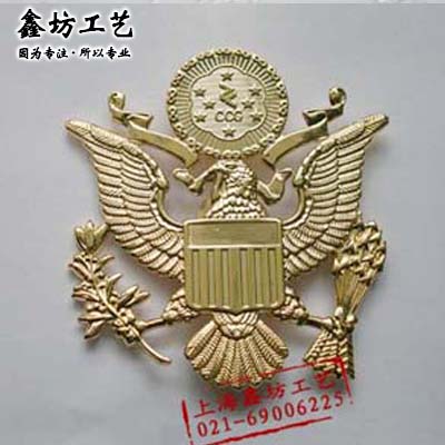 【产品名称】美国鹰一手抓橄榄枝一手抓箭 金属镂空徽章 鑫坊制品