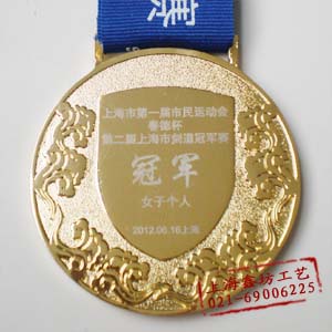 奖牌正面为剑道队员对打的浮雕,背面为中国特色比较强的"祥云图"此次比赛共产生128枚金银铜奖.