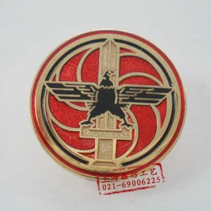 因为国内的劳动力便宜,而且徽章制作的历史比较悠久,工艺比较成熟,所以好多外国客户都愿意到中国来订做徽章,外国的徽章一般以电镀古色和放置金葱粉的比较常见,本例就是放置金葱粉的典型案例。
