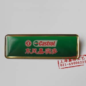 铜质镀金,平板印刷,可以印刷有渐变的图案,画面清晰,不失真.上海鑫坊徽章厂负责东方嘉实多全套徽章的制作.