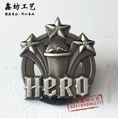 立体镂空电镀古银 hero英雄仿古徽章 上海徽章厂鑫坊制作