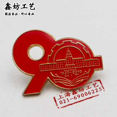 90周年珐琅镂空徽章 铜质冲压镂空徽章 周年庆徽章订做
