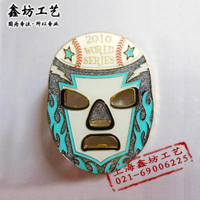 脸谱镂空徽章 金属烤漆闪粉徽章 上海鑫坊徽章制作厂