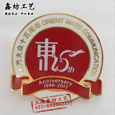 东方大众15周年徽章 珐琅加印刷徽章定做 上海鑫坊工艺制品