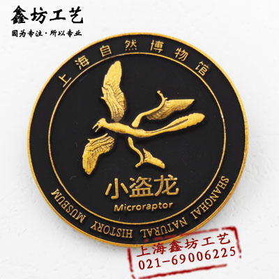 【产品名称】小盗龙古生物徽章 自然博物馆古生物徽章系列 鑫坊工艺