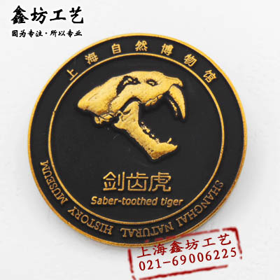剑齿虎古生物徽章 上海自然博物馆定制徽章 上海鑫坊工艺
