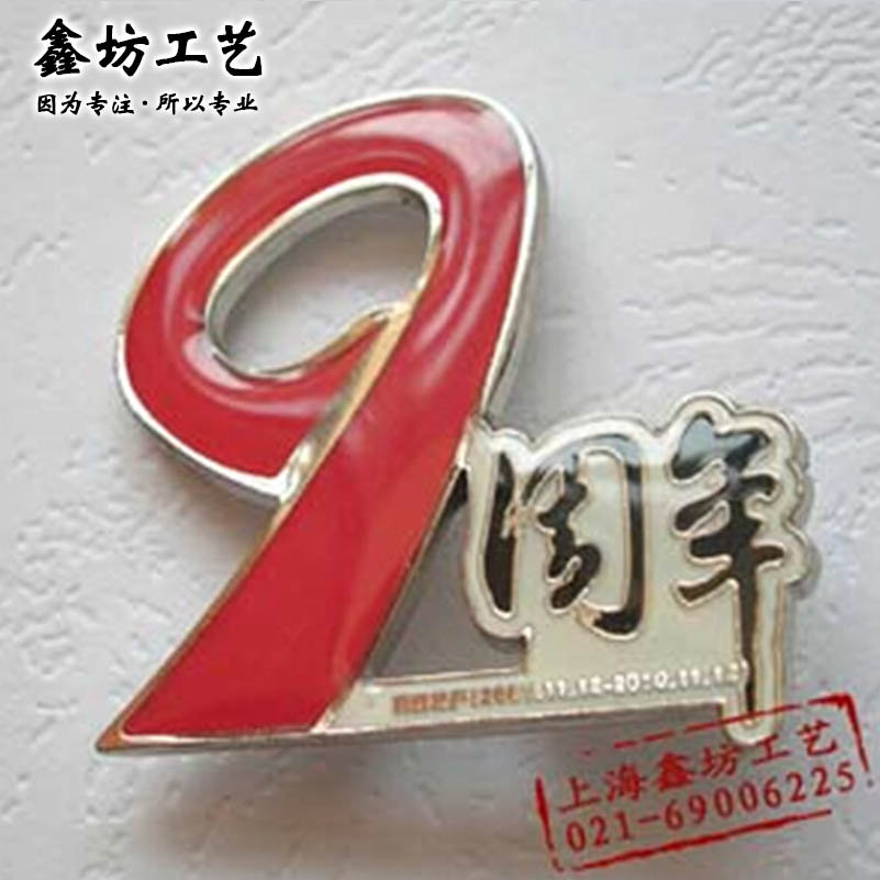 烤漆滴胶徽章 9周年金属徽章 烤漆滴胶镂空徽章 上海鑫坊工艺