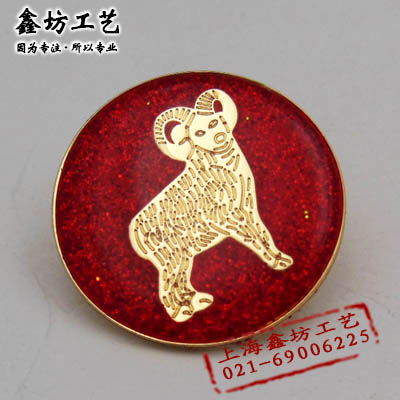 圆形烤漆加闪粉滴胶徽章 羊年吉祥金属徽章 上海鑫坊工艺