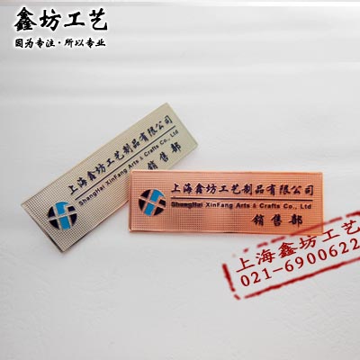 鑫坊腐蚀胸牌定做 布纹底咬版工号牌制作 销售部部门徽章定做