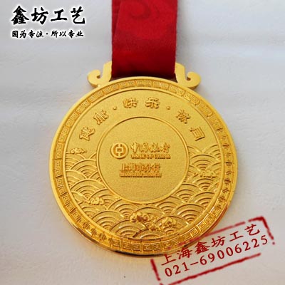 定做中国银行金属镀金织带奖牌 制作合金立体奖章 上海鑫坊