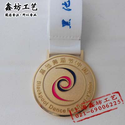制作黑池舞蹈节织带奖牌 定做金属镀金烤漆奖章厂 上海鑫坊