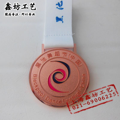 制作黑池舞蹈节织带奖牌 定做金属镀铜烤漆奖章厂 上海鑫坊